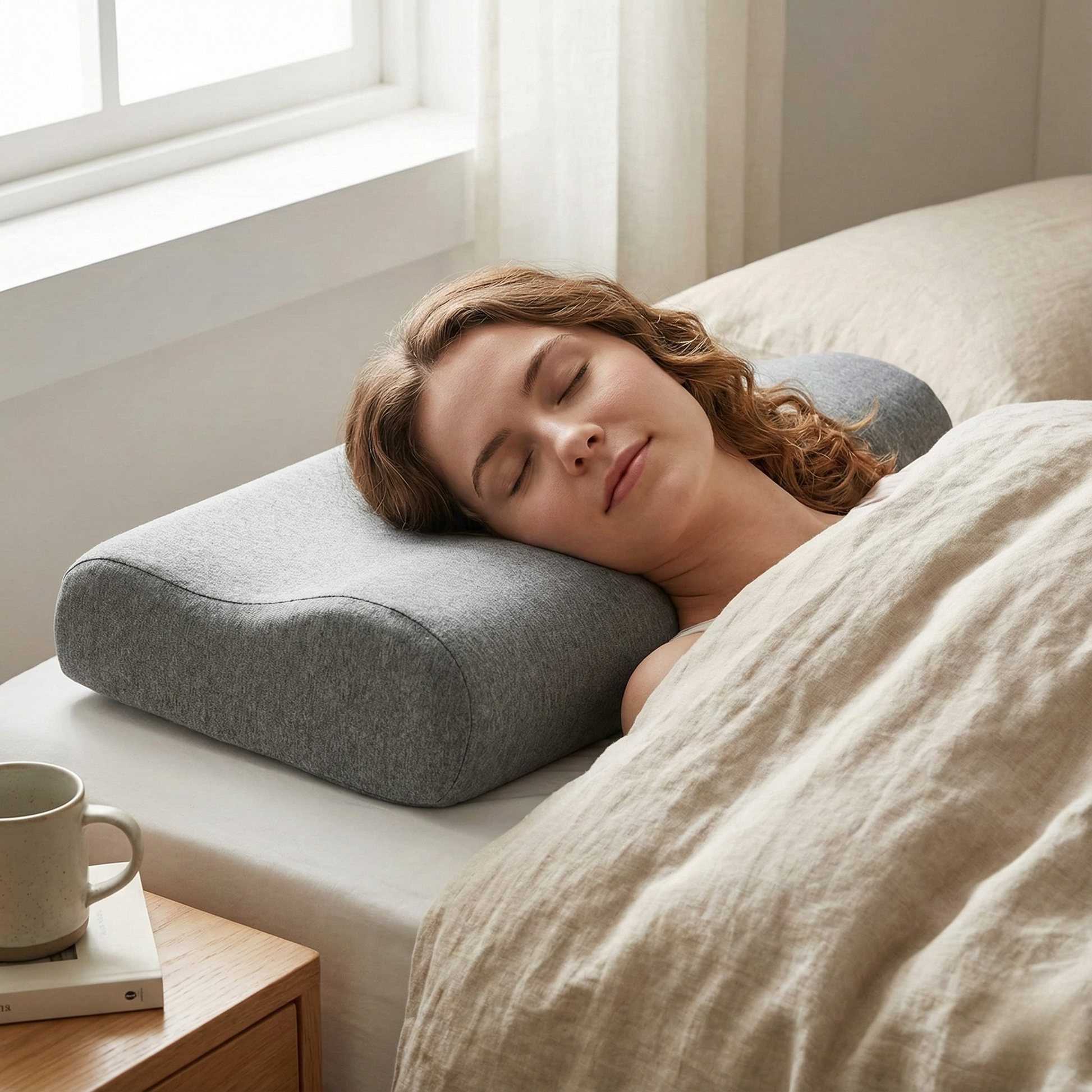 Menos tensión cervical al despertar: la almohada estabiliza la cabeza y reparte mejor el peso, ayudando a que el cuello no “trabaje” toda la noche.